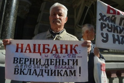 Вкладчики украинских банков, которые по решению Национального банка Украины признаны банкротами в силу их неплатежеспособности, перекрыли одну из главных улиц Киева с требованием вернуть им деньги. Украинский регулятор признал банкротами банки «Финансы и кредит», «Фидобанк», «Смартбанк», а также «Банк Михайловский», которые, по словам регулятора, не отвечают требованиям украинского законодательства в сфере регулирования банковской деятельности.